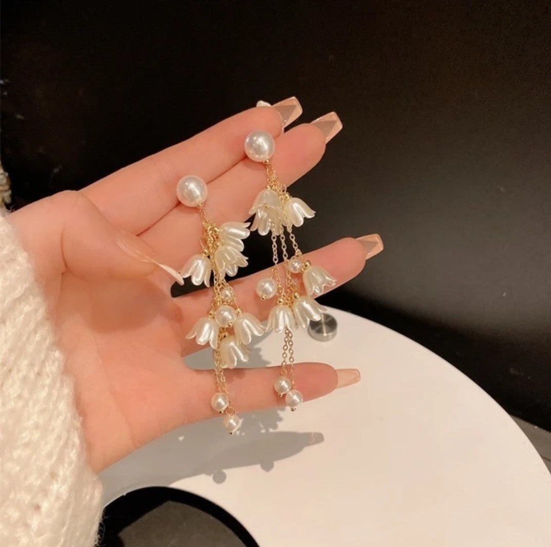 Lilly flower tassle long earrings